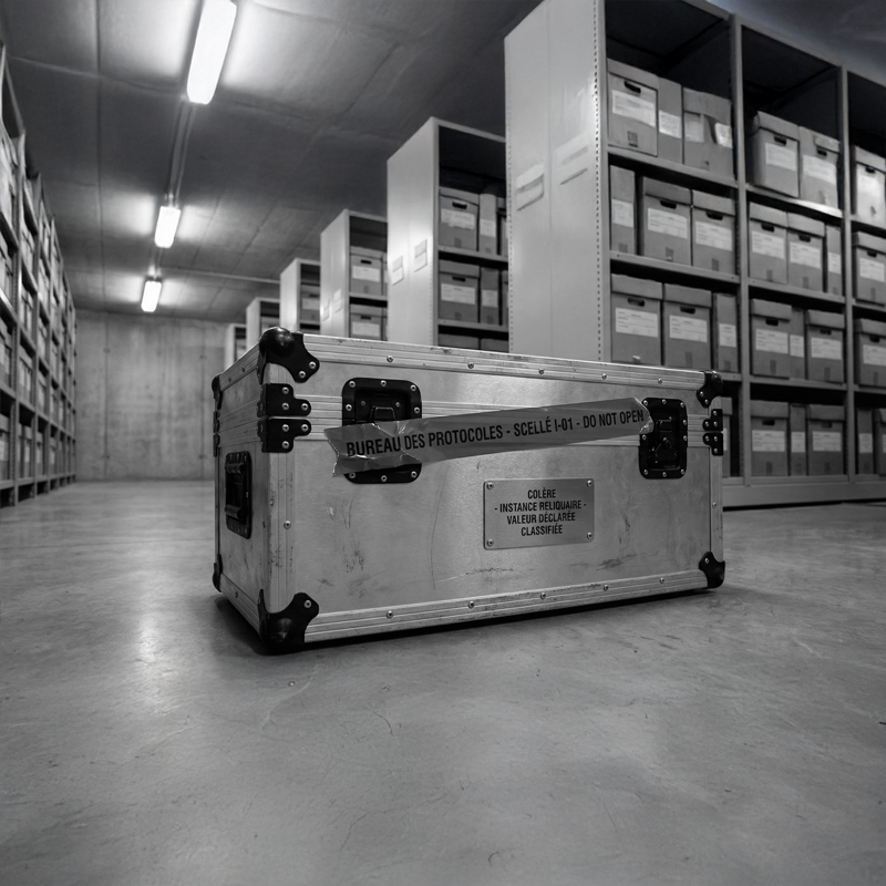 Là où l’Instance classique est un point d’accès, le Scellé est le Point d’Origine. Chaque œuvre est une unité de stockage haute sécurité conçue pour isoler la Pièce à Conviction unique ayant servi à l’exécution du Protocole (le Pavé de la Colère, la Chaussure de la Santé, l’Outil de la Vie).